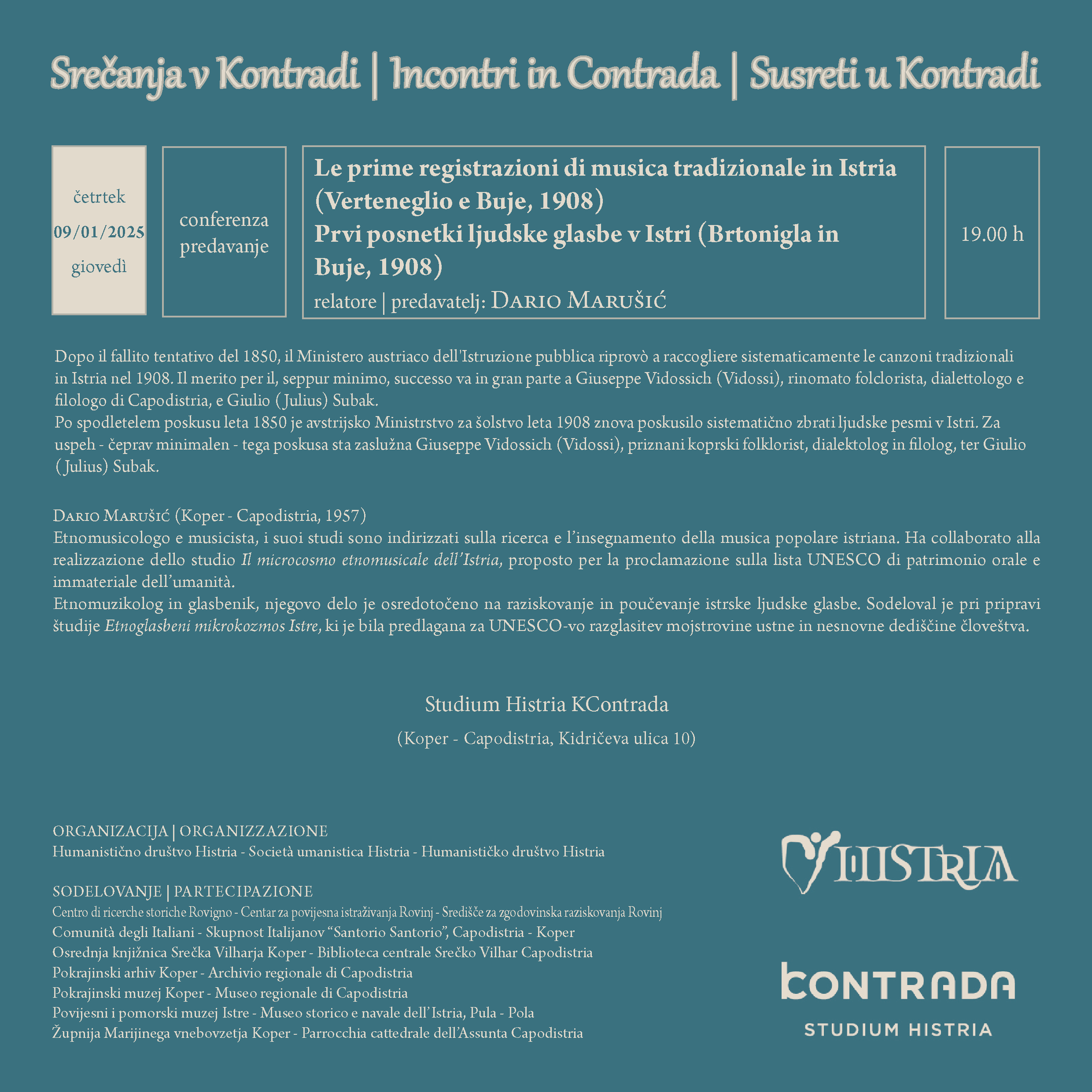 Prime registrazioni di musica popolare in Istria 09/01/202510/01/2025 Dean Krmac invito / vabilo Dario Marušić